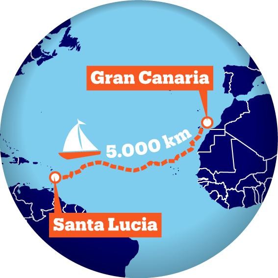 (eiland Gran Canaria - haven Las Palmas) naar het eiland Santa Lucia in de Caraïben.