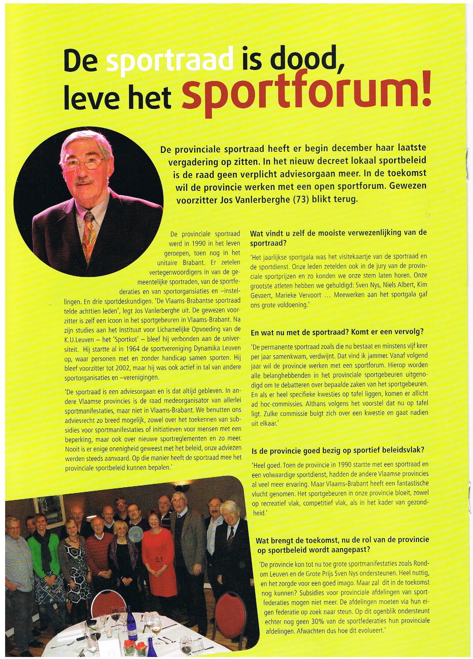 U vindt in de bijlage een kopij uit de Sportkrant Vlaams-Brabant (2013/4) waarin gemeld wordt dat de provinciale sportraad ophoudt en vanaf 2014 de plaats zal ruimen voor een “forum”.
